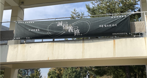 과거와 현재를 연결하는 길, ‘2024 건국대학교 성신의예술제: 誠信義路’의 현수막. |
