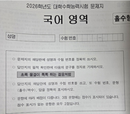 김지예, ”수험생 필적 확인 문구 ‘초록 물결이 톡톡 튀는 젊음처럼’”, 서울신문, 2025.11.13